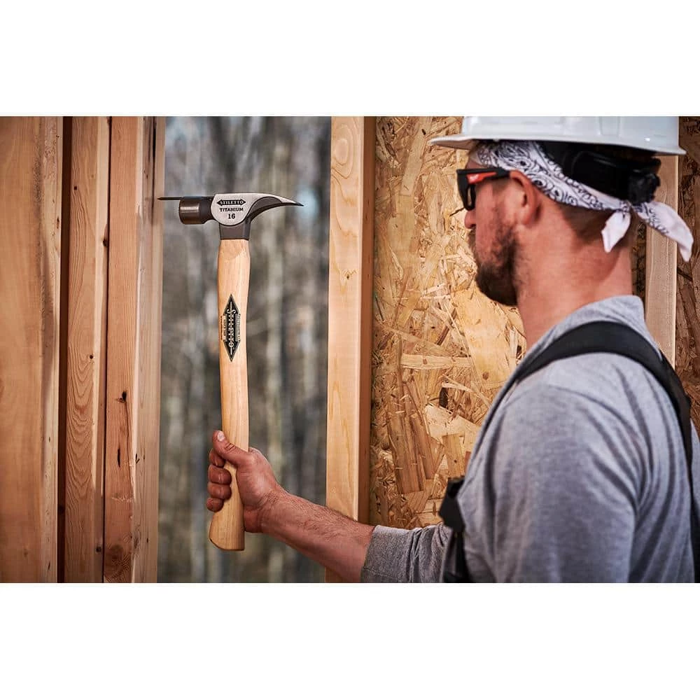 The Stiletto TI16MC is a 16 Oz. Titanium Milled Face Hammer with 18 in. Curved Hickory Handle. The Hammer has a straight claw design and Stiletto’s signature Magnetic Nail Starter. The TI16MC has the comparable striking force of 28 Oz Steel hammer and is recommended for residential framing and remodeling. Stiletto Tool Company has been synonymous with high quality hand tools dating back to 1849. With its long history and strong reputation, the brand has evolved into the modern day standard for innovative, lightweight, ergonomic, productive, and professional tools. We set the standard with our line of premium titanium hand tools that span numerous trades such as framing, remodeling, finish work, siding, demolition, concrete, and drywall. Titanium is 45% lighter weight while providing the same striking force and strength as steel. Titanium tools also produce 10 times less recoil shock which helps reduce carpal tunnel syndrome. The combination of these features means less down time, more productivity, and most importantly less pain while working.
