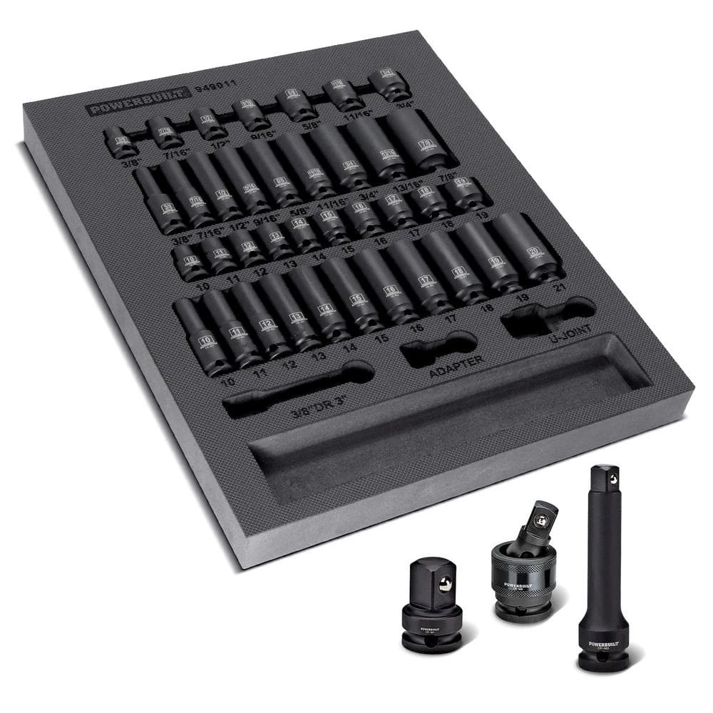 Powerbuilt Impact Sockets and accessories feature an industrial grade Black Phosphate finish that prevents corrosion and extends the life of the tool. Each socket is made from impact-rated Chrome Molybdenum Steel material for added durability with laser-engraved size marking that won’t rust or wear off – ever. Precision chamfered hex faces make it easier to guide onto fasteners and the exclusive Z-Drive 6 point hex pattern grabs and turns the flat surfaces of those fasteners to reduce round-off and slipping. Finally, socket center holes are punched through to add a bit more clearance for taller nuts and bolts. Powerbuilt impact socket and accessories offer the look, feel and performance hard-working Techs deserve and exceed ANSI standards for performance and quality.